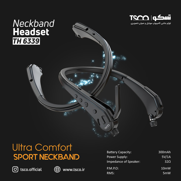 هدست بلوتوث TSCO-TH6339، همراهی بینظیر برای تمام لحظات شماست. این هدست با طراحی شیک و ارگونومیک بهصورت گردنبندی ساخته شده و بهواسطه وزن کم و راحتی فوقالعاده، در استفادههای طولانیمدت هیچگونه فشاری به گردن شما وارد نمیکند. 6339 طراحی بسیار کمجایی دارد. این هدست هم مجهز به سیمجمعکن است تا سلامت سیم هدست را به طول کامل حفظ کند و هم طراحی تاشو دارد و میتوانید بهراحتی آن را تاکرده و در کیف یا جیب خود قرار دهید. جنس کابل PVC این هدست، مقاومت و دوام بالایی در برابر کشش و پارگی دارد و خیال شما را از بابت استفاده طولانیمدت از آن راحت میکند. طول 420 میلیمتری کابل نیز آزادی عمل کافی را برای جابجایی در حین استفاده از هدست به شما میدهد. کنترل آسان صدای موسیقی و مدیریت تماسها با استفاده از کلیدهای تعبیه شده روی هدست TH 6339 ممکن شده است تا بتوانید در هر مکان و هر زمانی از این هدست استفاده کنید. میکروفن جداشونده این هدست، کیفیتی عالی برای مکالمات تلفنی دارد. بهعلاوه میتواند صدای شما را تقویت کند تا در محیطهای شلوغ بهراحتی مکالمه کنید. نکبند تسکو مدل TH6339 مجهز به بهروزترین فناوریهای روز دنیاست. با جدیدترین نسخه بلوتوث 5.2، سرعتی پایدار و بدون قطعی را تجربه خواهید کرد و میتوانید از موسیقی و مکالمه خود بدون هیچ نگرانی لذت ببرید. برد دهمتری این هدست، آزادی عمل فراوانی در جابهجایی و دورشدن از منبع اصلی بلوتوث برایتان فراهم میکند. TH 6339 باتری لیتیوم پلیمری 300 میلی آمپری دارد. با این باتری قدرتمند هدست گردنبندی شما میتواند تا 30 ساعت پخش موسیقی و 33 ساعت مکالمه را بهراحتی تضمین کند. اینها در حالی است که شارژ این دستگاه تنها 3 ساعت طول میکشد و همچنین میتواند تا 13 روز در حالت استندبای باتری خود را حفظ کند. هدست بلوتوث TSCO-TH6339 تنها یک وسیله برای گوشدادن به موسیقی یا مکالمه نیست، بلکه تجربهای فراتر از آن را به شما ارائه میدهد. با پشتیبانی از انواع پروفایلهای بلوتوث (SBC، HSP، HFP، A2DP، AVRCP) این هدست با هر دستگاهی که فکرش را میکنید، به طور کامل سازگار است.