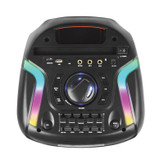 مشخصات ظاهری اسپیکر بلوتوثی تسکو مدل TS 1917 در بخش طراحی ظاهری این اسپیکر یکی از نکاتی که خیلی جلب توجه میکند نورپردازی RGB و جذاب آن است. با این طراحی شما میتوانید از فضاسازی آن لذت برده و حس و حال بهتری به اتاق خود ببخشید. اسپیکر بلوتوثی تسکو مدل 1917TS از یک پورت USB، 2ورودی میکروفن و درگاه AUX پشتیبانی میکند. این محصول از لحاظ ظاهری بسیار جذاب و بروز بوده و به رنگ مشکی به بازار عرضه شده است. یکی از روشهای اتصال جالب برای این دستگاه TWS است که با استفاده از این قابلیت میتوانید دو اسپیکر را به صورت همزمان به دستگاه متصل کنید تا امکان صدای کانال چپ و راست را با هم فراهم کنید. همچنین استفاده از TF Card یا micro SD نیز برای این دستگاه فراهم است. شما برای اتصال به رادیو نیز محدودیتی نخواهید داشت. ابعاد فیزیکی 1917 برابر 282x292x600 میلیمتر بوده که برای یک اسپیکر بلوتوثی با این حجم از صدا مناسب است. طراحی شیک و مدرن با کاربری راحت! وزن این اسپیکر 8 کیلوگرم بوده و با توجه بلوتوثی بودن آن مناسب به نظر میرسد. این اسپیکر بلوتوثی تا فاصله 10 متری قابلیت اتصال به دستگاه مورد نظر شما را داشته و شما میتوانید از طریق درگاه USB اسپیکر را شارژ کنید. در طراحی این اسپیکر در بخش بالایی دستگاه بخش تنظیمات اسپیکر قرار گرفته که شامل ورودی میکروفن، پورت AUX، یک درگاه USB و درگاه TF هست تا شما بتوانید به طرق مختلف موسیقی دلخواه خود را گوش دهید. در کنار اینها 4 دکمه برای پخش آهنگ و تغییر حالت پخش و همچنین عقب و جلو زدن آهنگ روی این اسپیکر تعبیه شده است. یک بخشی نیز برای زیاد و کم کردن صدا در نظر گرفته شده است. دکمهای جهت تغییر حالات نورپردازی روی اسپیکر TS 1917 قرار گرفته که جذابیت خاصی برای کاربر ایجاد میکند. با گرفتن دکمه مود بعد از 3 ثانیه نگه داشتن دکمه میتوانید از قطع شدن بلوتوث مطمئن شوید. شما از اسپیکر TS 1917 امکاناتی چون ورودی گیتار، ضبط صدا، کارائوکه، اکولایزر، اولویت میکروفون و اکو را دریافت میکنید. با استفاده از کلید کنترل تعبیه شده روی دستگاه میتوانید حالتهای مختلف ( میکروفون، گیتار، اکو، تریبل و بیس) را تنظیم کنید.
