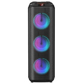 یک اسپیکر پرتابل قدرتمند با طراحی زیبا و کاربردی است که برای استفاده در مهمانیها، دورهمیها و فضاهای باز گزینهای ایدهآل محسوب میشود. این اسپیکر از فناوری بلوتوث برای اتصال بیسیم پشتیبانی میکند و همچنین دارای پورت USB، ورودی کارت حافظه (SD) و AUX است که امکان پخش موسیقی از منابع مختلف را فراهم میسازد. کیفیت صدای قوی با بیس عمیق، همراه با نورپردازی LED جذاب، تجربهای منحصربهفرد از موسیقی ارائه میدهد. از دیگر امکانات این مدل میتوان به ورودی میکروفون برای کارائوکه، باتری داخلی قابل شارژ با ماندگاری طولانی و طراحی سبک با دستگیره حمل برای جابجایی آسان اشاره کرد از قدرت صدا، قابلیتهای چندمنظوره و طراحی کاربرپسند است که تجربه صوتی بینظیری را به ارمغان میآورد. دارای سه سابووفر با اندازه 8 اینچ است که طراحی آنها علاوه بر ایجاد جلوهای خاص، نقش مهمی در ارائه صدای قدرتمند و بیس عمیق ایفا میکنند.. همراه این اسپیکر یک میکروفون بیسیم ارائه میشود که استفاده از آن برای سخنرانیها، آوازخوانی یا اجرای زنده را آسان میکند. میکروفون باکیفیت این محصول، صدایی شفاف و بدون نویز ارائه میدهد که برای کاربران حرفهای نیز بسیار مناسب است. یکی از مهمترین ویژگیهای اسپیکر 8303 ZQS، توان خروجی 40 وات آن است که صدایی قوی و شفاف ارائه میدهد. این میزان قدرت، کافی است تا محیطهای بزرگ مانند سالنهای اجتماعات یا مهمانیها را پوشش دهد. ترکیب این توان خروجی با سه سابووفر 8 اینچی، بیسی عمیق و جزئیات صوتی دقیق را به ارمغان میآورد. این اسپیکر مجهز به یک باتری قدرتمند 4500 میلیآمپری است که امکان پخش موسیقی برای ساعتهای طولانی را فراهم میکند. با یک بار شارژ کامل، میتوانید بدون نگرانی از کاهش انرژی، از اسپیکر برای مدت طولانی در محیطهای مختلف استفاده کنید. این ویژگی برای مسافرت، پیکنیک یا مراسمهای طولانی بسیار کاربردی است. اسپیکر ZQS مدل 8303 با امکانات پیشرفته، صدای قدرتمند و طراحی مدرن، گزینهای ایدهآل برای انواع کاربردها از جمله سرگرمی، موسیقی و استفاده حرفهای است. این اسپیکر با ویژگیهای بینظیر خود مانند ورودی گیتار و کیبورد، میکروفون بیسیم و باتری قدرتمند، تمامی نیازهای کاربران را برآورده میکند