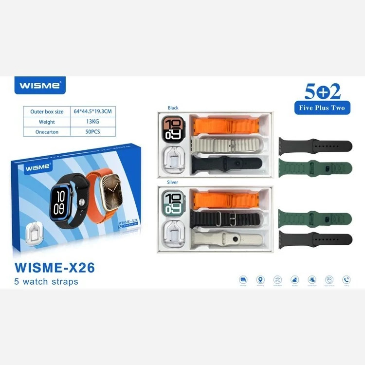 ساعت هوشمند مدل WISME-X26 به همراه ایرپاد شیشه ای و 5 بند جذاب