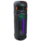 اسپیکر حرفهای PartyBox GS-42 جدیدترین مدل از اسپیکرهای سری پارتی باکس از کمپانی معتبر تلاش می باشد. شما میتوانید از این سیستم صوتی در دو حالت برق یا باتری استفاده کنید. درایورهای حرفهای این اسپیکر و دو باند 8 اینچ صدای موسیقی را با وضوحبالا و بیس قدرتمندی پخش میکنند و باعث افزایش هیجان مهمانی شما میشوند. کانکشنهای پرکاربرد به شما امکان اتصال آسان به دو صورت بیسیم و باسیم را میدهند تا بتوانید با هر دستگاهی بهراحتی به این سیستم صوتی متصل شوید و موسیقی دلخواه خود را بشنوید. برای اتصال به PartyBox RS-D41 کافی است بلوتوث موبایل یا تبلت خود را روشن کنید، اسپیکر را جستجو کرده و متصل شوید. میتوانید آهنگهای موردعلاقه خود را در یک فلش مموری بریزید و از طریق پورت USB به اسپیکر متصل کرده و پخشکنید. همچنین میتوانید توسط کابل AUX دستگاه خود را از طریق ورودی 3.5 میلیمتری به اسپیکر متصل کنید. حالا فقط دکمه پخش را فشار داده و آماده شنیدن موسیقی با صدای با کیفیت و فوق العاده شوید.در کنار تمام این قابلیت ها شما میتوانید با استفاده از قابلیت TWSدواسپیکر D41 را به طور همزمان متصل کرده و از موزیک مورد علاقه خود به صورت استریو لذت ببرید . همچین میکروفون های بیسیم و دیجیتال همراه با اسپیکر علاوه بر کیفیت بسیار بالا شامل 4 صدای مختلف میباشد که بازی خوانندگی (کارءوکه)را بسیار جذاب و سرگرم کننده میکند.
