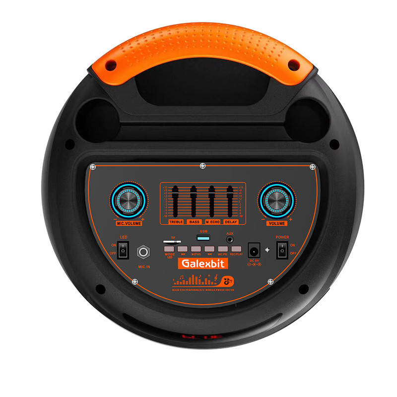 اسپیکر حرفهای PartyBox GS-42 جدیدترین مدل از اسپیکرهای سری پارتی باکس از کمپانی معتبر تلاش می باشد. شما میتوانید از این سیستم صوتی در دو حالت برق یا باتری استفاده کنید. درایورهای حرفهای این اسپیکر و دو باند 8 اینچ صدای موسیقی را با وضوحبالا و بیس قدرتمندی پخش میکنند و باعث افزایش هیجان مهمانی شما میشوند. کانکشنهای پرکاربرد به شما امکان اتصال آسان به دو صورت بیسیم و باسیم را میدهند تا بتوانید با هر دستگاهی بهراحتی به این سیستم صوتی متصل شوید و موسیقی دلخواه خود را بشنوید. برای اتصال به PartyBox RS-D41 کافی است بلوتوث موبایل یا تبلت خود را روشن کنید، اسپیکر را جستجو کرده و متصل شوید. میتوانید آهنگهای موردعلاقه خود را در یک فلش مموری بریزید و از طریق پورت USB به اسپیکر متصل کرده و پخشکنید. همچنین میتوانید توسط کابل AUX دستگاه خود را از طریق ورودی 3.5 میلیمتری به اسپیکر متصل کنید. حالا فقط دکمه پخش را فشار داده و آماده شنیدن موسیقی با صدای با کیفیت و فوق العاده شوید.در کنار تمام این قابلیت ها شما میتوانید با استفاده از قابلیت TWSدواسپیکر D41 را به طور همزمان متصل کرده و از موزیک مورد علاقه خود به صورت استریو لذت ببرید . همچین میکروفون های بیسیم و دیجیتال همراه با اسپیکر علاوه بر کیفیت بسیار بالا شامل 4 صدای مختلف میباشد که بازی خوانندگی (کارءوکه)را بسیار جذاب و سرگرم کننده میکند.