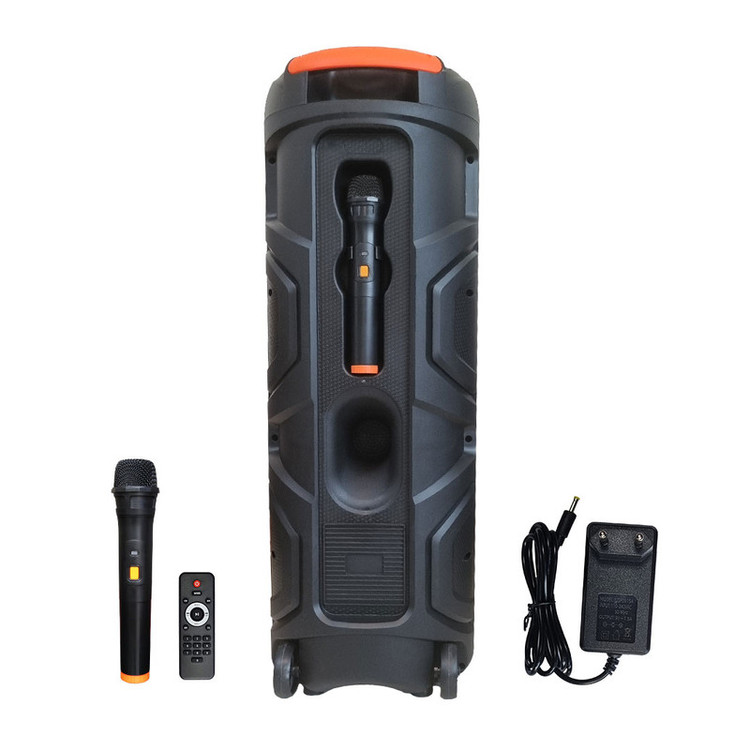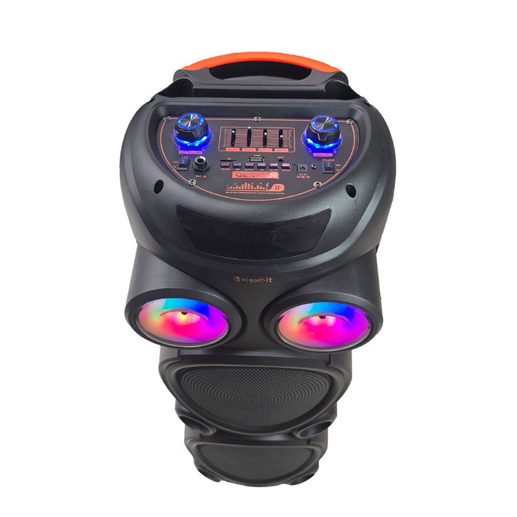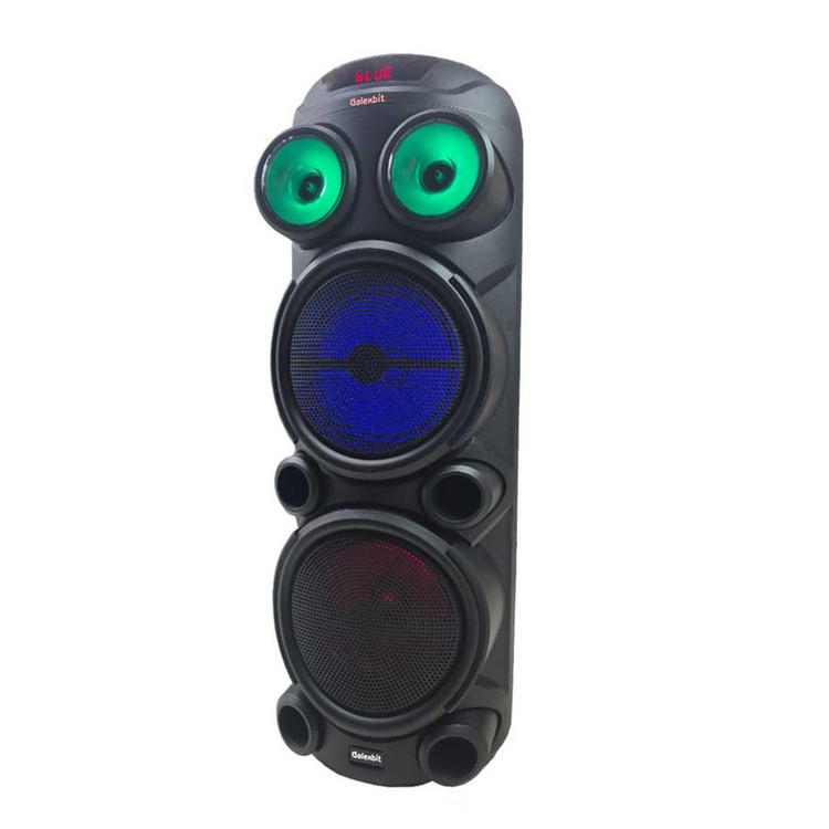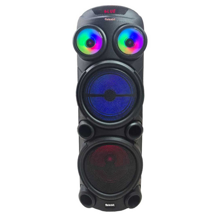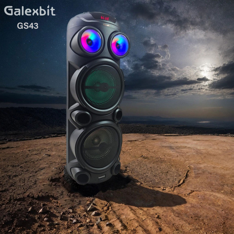 اسپیکر حرفهای PartyBox GS-43 جدیدترین مدل از اسپیکرهای سری پارتی باکس از کمپانی معتبر تلاش می باشد. شما میتوانید از این سیستم صوتی در دو حالت برق یا باتری استفاده کنید. درایورهای حرفهای این اسپیکر و دو باند 8 اینچ صدای موسیقی را با وضوحبالا و بیس قدرتمندی پخش میکنند و باعث افزایش هیجان مهمانی شما میشوند. کانکشنهای پرکاربرد به شما امکان اتصال آسان به دو صورت بیسیم و باسیم را میدهند تا بتوانید با هر دستگاهی بهراحتی به این سیستم صوتی متصل شوید و موسیقی دلخواه خود را بشنوید. برای اتصال به PartyBox RS-D43 کافی است بلوتوث موبایل یا تبلت خود را روشن کنید، اسپیکر را جستجو کرده و متصل شوید. میتوانید آهنگهای موردعلاقه خود را در یک فلش مموری بریزید و از طریق پورت USB به اسپیکر متصل کرده و پخشکنید. همچنین میتوانید توسط کابل AUX دستگاه خود را از طریق ورودی 3.5 میلیمتری به اسپیکر متصل کنید. حالا فقط دکمه پخش را فشار داده و آماده شنیدن موسیقی با صدای با کیفیت و فوق العاده شوید.در کنار تمام این قابلیت ها شما میتوانید با استفاده از قابلیت TWSدواسپیکر D41 را به طور همزمان متصل کرده و از موزیک مورد علاقه خود به صورت استریو لذت ببرید . همچین میکروفون های بیسیم و دیجیتال همراه با اسپیکر علاوه بر کیفیت بسیار بالا شامل 4 صدای مختلف میباشد که بازی خوانندگی (کارءوکه)را بسیار جذاب و سرگرم کننده میکند.